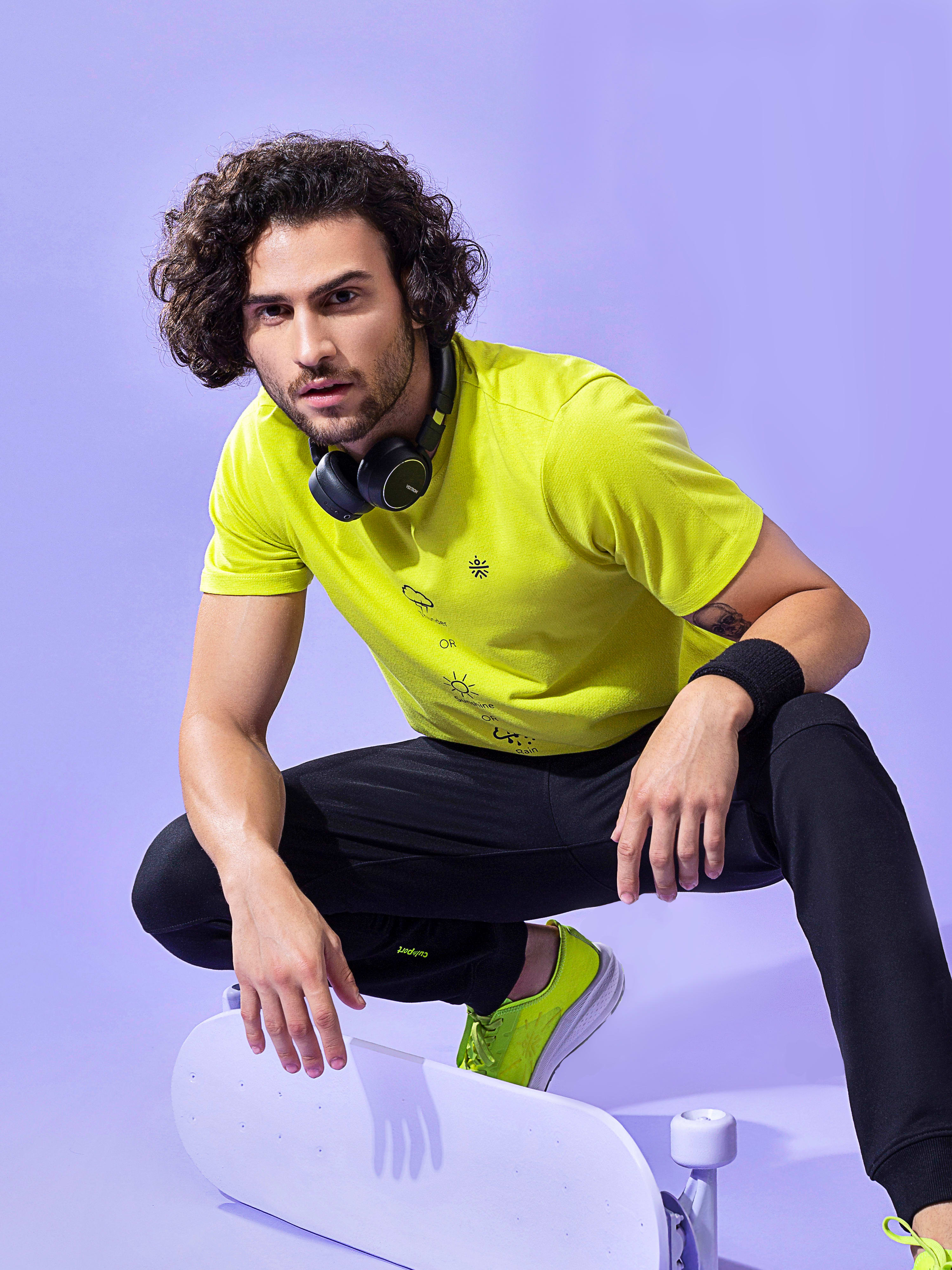 Give fitness fashion a new meaning with this crew neck t-shirt's minimalistic graphic. With fabric that allows you to breathe without restriction, this t-shirt combines sweat-wicking FlyDry technology, supersoft and breathable fabric, and creative brilliance to make sure that nothing stops you from getting better every day! And if you need it, there's a storage pocket at the back of your T-shirt.