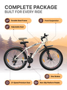 Bolt Ultra Mountain Bike Steel 21 Speed Cycle 27.5 inch Tyre, White With Front Suspension, Double Wall Rim and Dual Disc Brakes, Ideal For 5.2 ft to 6 ft
