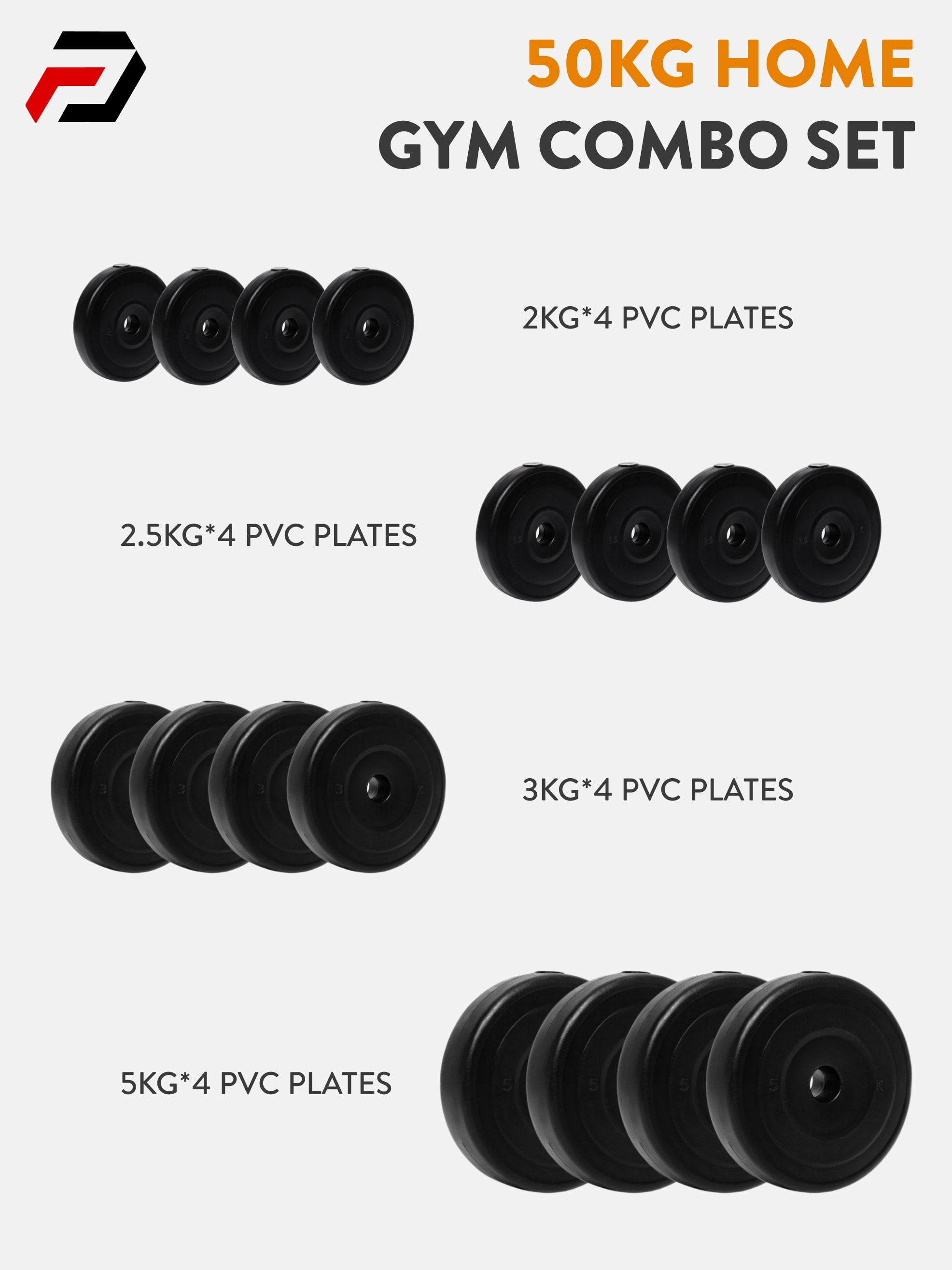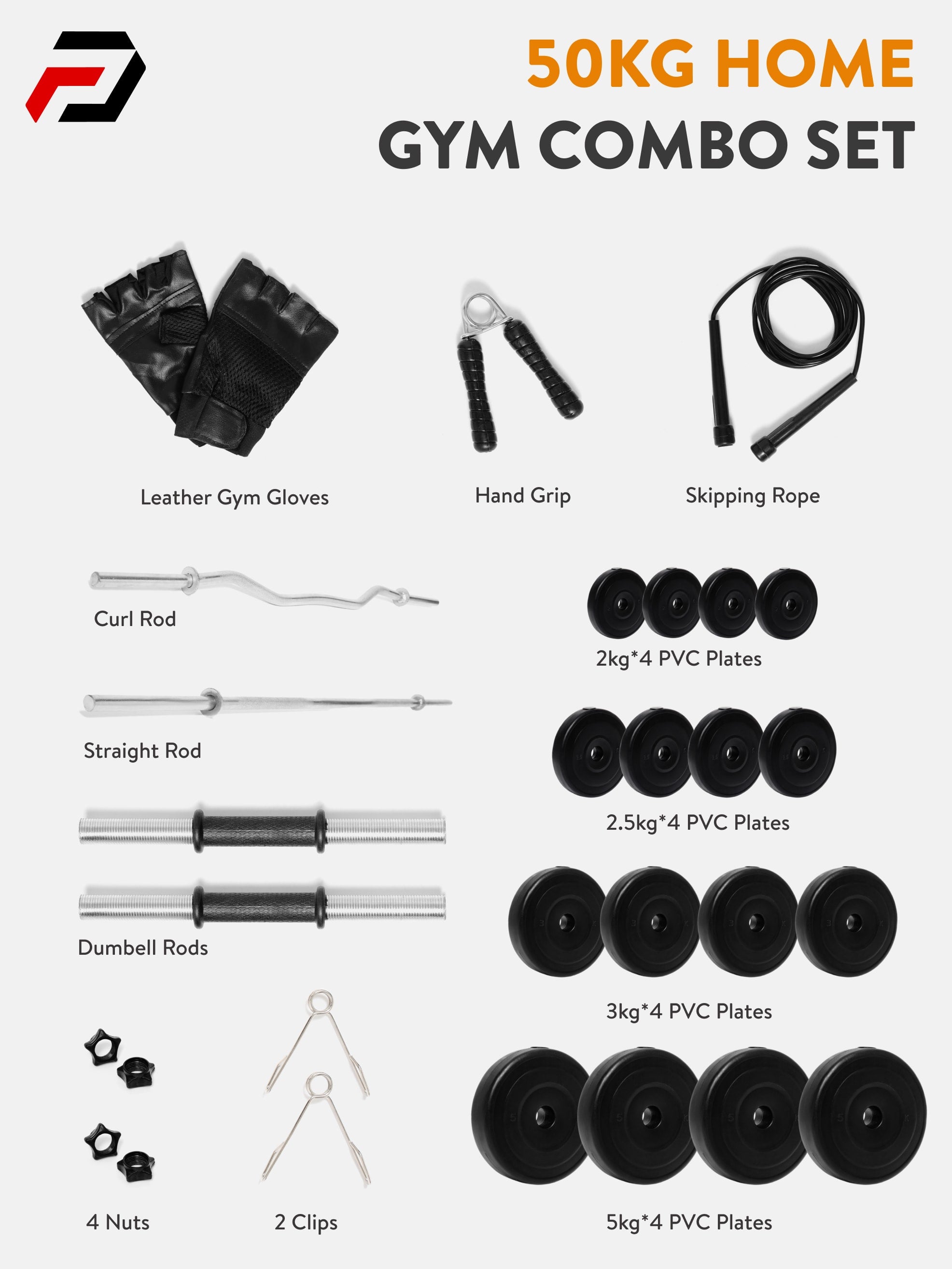 50 kg PVC Curl, Straight Rod Home Gym Combo