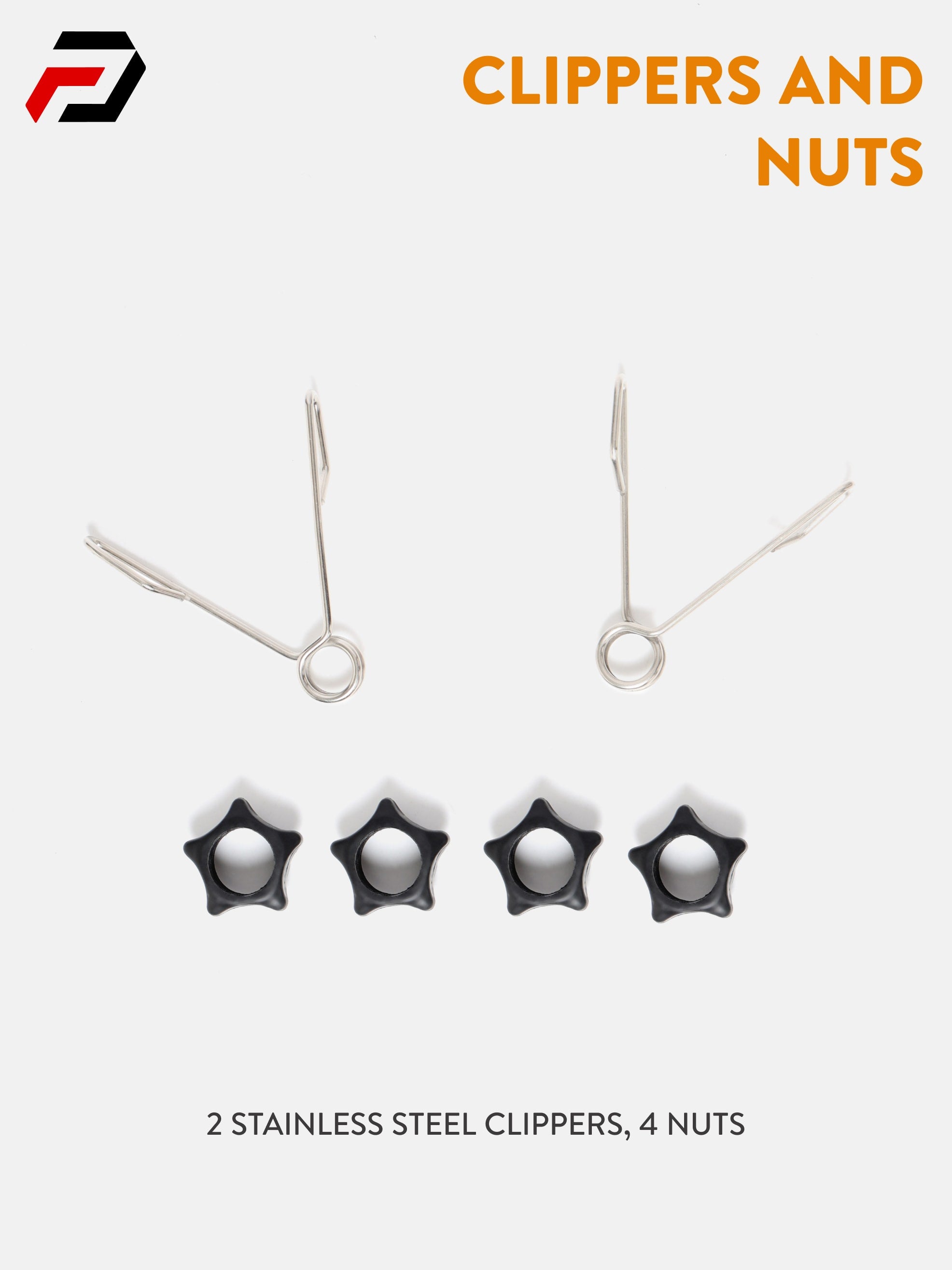 Includes:1 pair glove, 1 rope, 1 hand grip, 1 straight rod, 1 curl rod, 2 dumbbell rods, 4 plates x 5kg, 3kg, 2kg, 2.5kg, 4 nuts, 2 clips