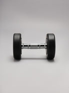12.5kg rubber coated round dumbbells. These dumbbells are designed to provide a comfortable grip and a large surface area for hand placement during exercise. They are made of durable materials and are compact in size, making them easy to store in a variety of settings. They are suitable for both professional and beginner weightlifters and can be used in both home and commercial gym settings. These dumbbells are ideal for strength training and toning muscles