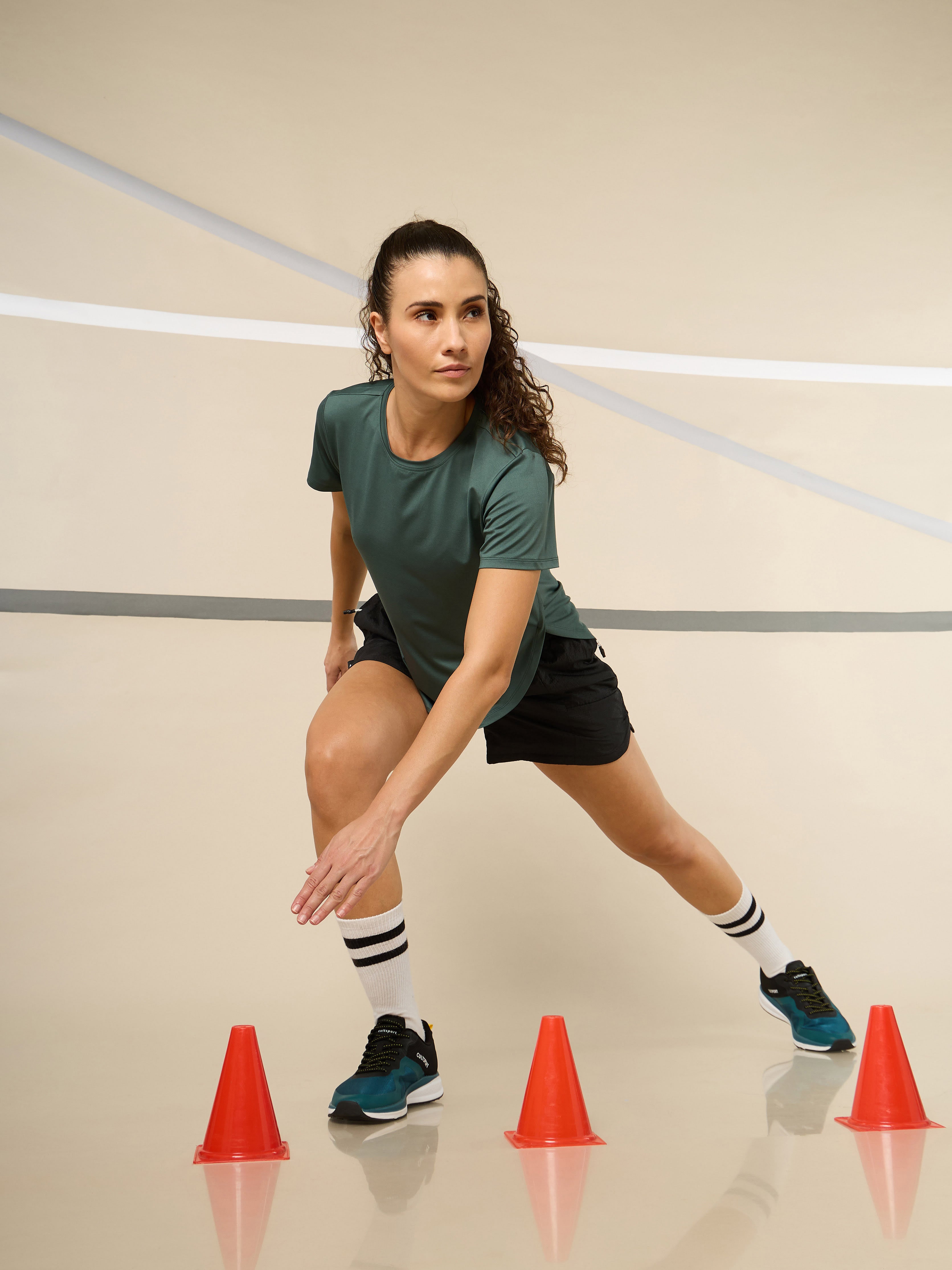 Sweatproof your workout game with the Round Hem full range T-shirt, engineered to combat sweat. Featuring cutting-edge Flydry technology, it efficiently wicks away moisture, ensuring you stay cool, dry, and prepared to conquer your day. The round hem enhances freedom of movement, facilitating seamless performance during your intense workouts.