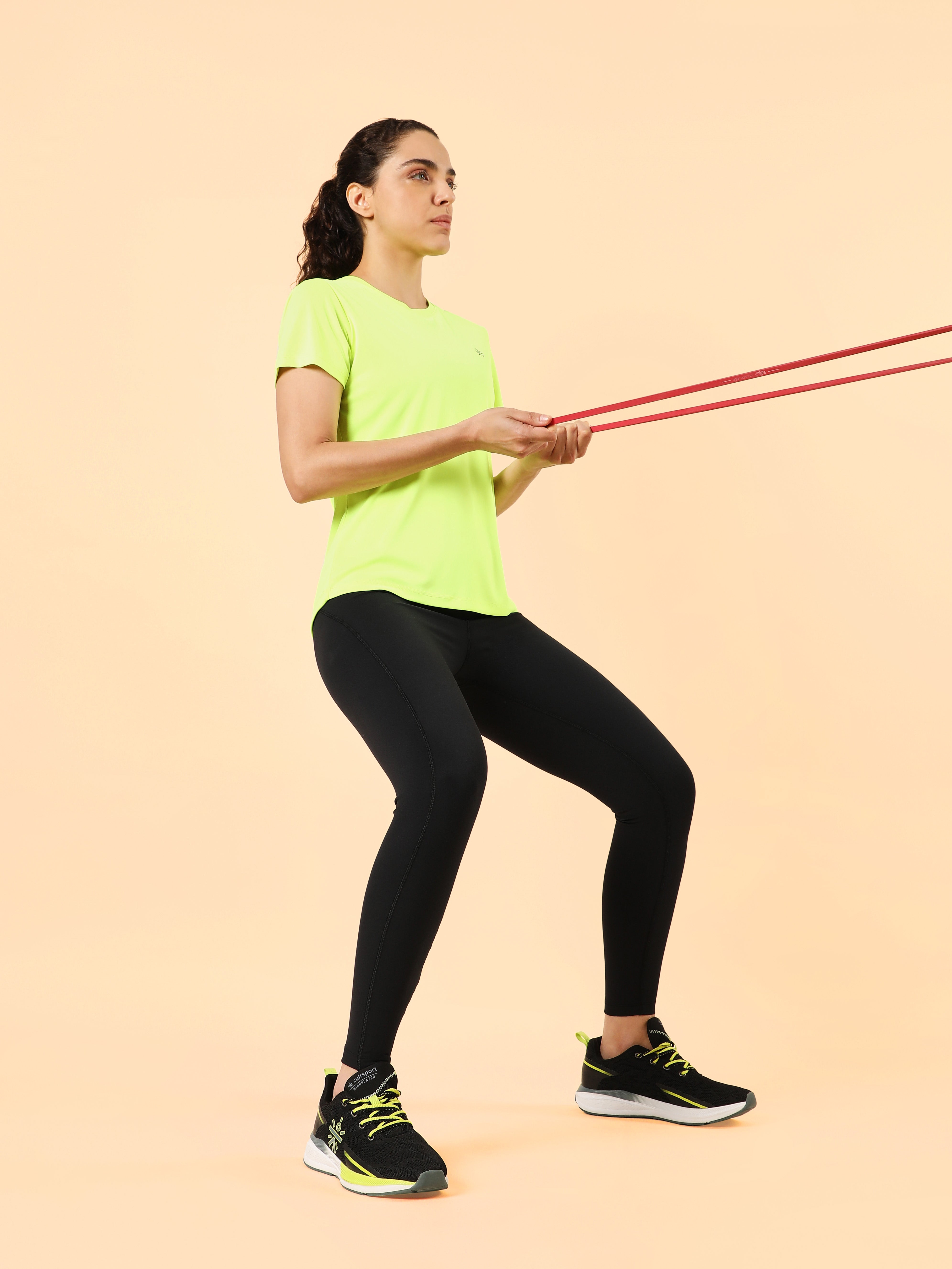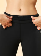 Take your workouts to the next level with our performance tights made from ultra-lightweight fabric. The polyester-spandex blend enables a 4-way stretch making this leggings ideal for asanas with wide range of motion.With its 7/8th length and sleek design, they are also ideal for weight training and heavy workouts and can double as a casual wear for running errands. The hidden drawstring accommodates adjustability and the design includes a triangular piece of fabric sewn into the crotch area, ensuring that the fabric lays flat allowing you to be mobile with confidence!