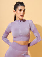 Seamless cropped zip through jacket is made for all-around movement. The relaxed fit zip-up jacket made of textured seamless fabric provides a perfect cropped fit and comfort, making it suitable high-level mobility activities.