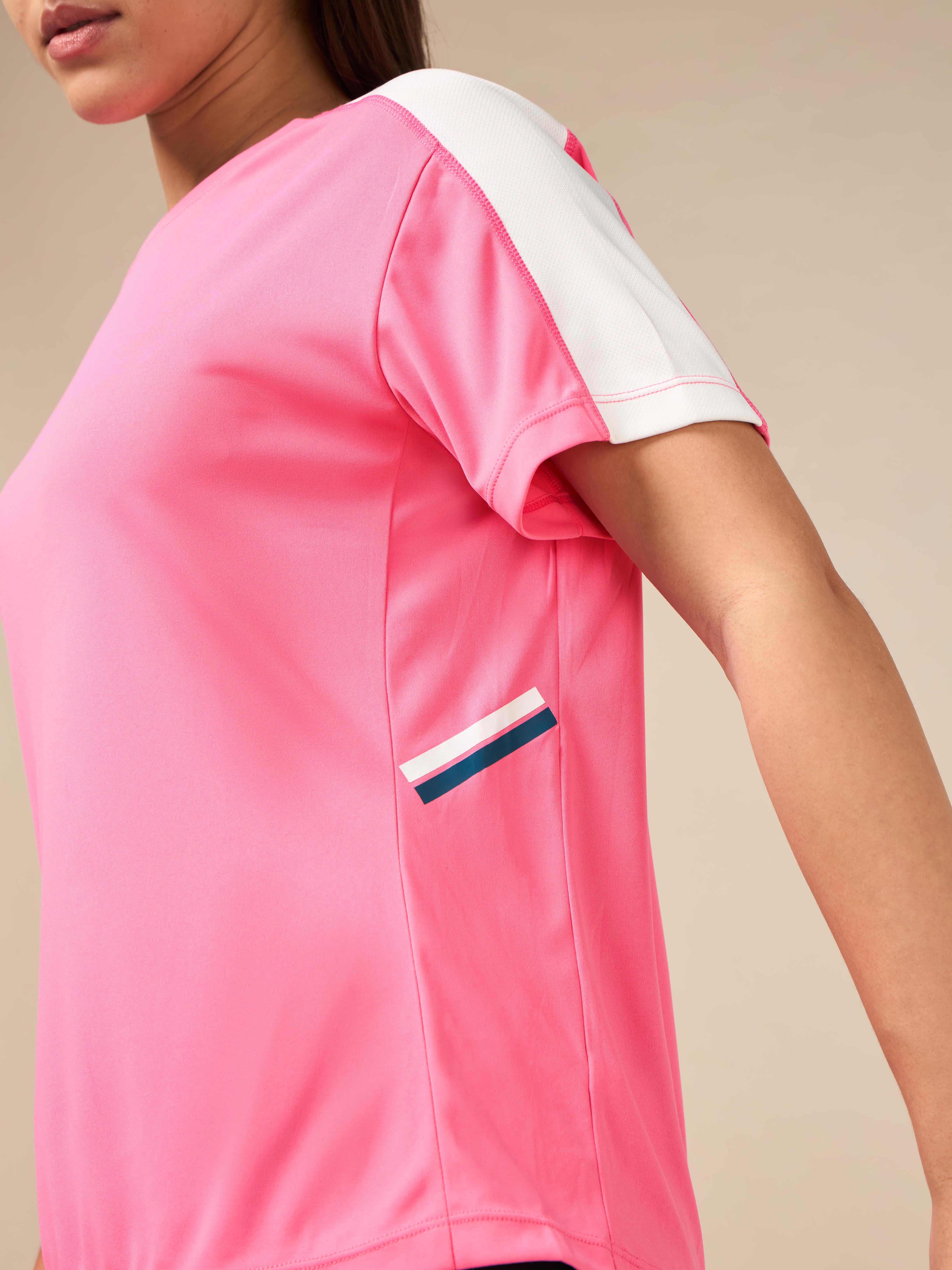 Gear up for greatness with our Train-In Essential T-shirt – the superhero of your workout wardrobe! Made with moisture-wicking fabric, it's your personal sweat-fighting sidekick, keeping you cool and dry through every rep and pose. Its stylish curved hem adds a dash of flair, while its feather-light weight makes it easy for your workouts. Whether you're crushing cardio or training in the gym, this tee is your ticket to fitness. So, slip it on, feel the power, and let your inner athlete shine!