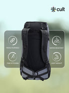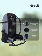 Cult 65 Litre Travel Backpack | Hiking Trekking Bag | Camping Rucksack with Water Proof Rain Cover, Shoe Compartment | Grey