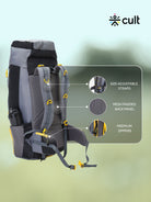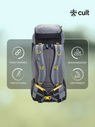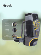 Cult 75 Litre Hiking Trekking Bag | Camping Rucksack | Travel Backpack with Shoe Compartment | Black | 1 Year Warranty