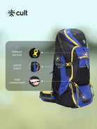 Cult 95 Litre Travel Backpack | For Outdoor Sport Camp | Hiking Trekking Bag | Camping Rucksack | Blue | 1 Year Warranty