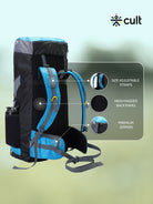 Cult 60 Litre Travel Backpack | Hiking Trekking Bag | Camping Rucksack Shoe Compartment | Blue | 1 Year Warranty