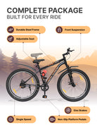 UT5001S27ACC Mountain Cycle Steel Single Speed 27.5 inch with Dual Disc Brakes, Front Suspension, Double Wall Alloy Rim, Bell & Lock, Black