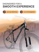 The High-quality double disc brakes on both front and rear wheels ensure stable and quick braking. The disc brakes help you navigate safely during challenging situations such as a crowded market. || The bike has a sturdy and reliable steel frame that can brave rough riding conditions and terrains. The top-notch construction quality ensures that the bike has a long lifespan. || The bike comes packed with light and strong double walled alloy rims along with 27.5 inches wide tyres that supports comfortable riding and a major performance advantage on the road.|| Easily adjustable saddle height and an attractive grip offer superior comfort and well cushioned ride.||The front suspension provides stability to the bicycle and can absorb any bumps and dips encountered on your path for a smoother ride . It also provides strong pedal powers for strong acceleration on straight surfaces and uphill climbs || Made from high quality steel frame these bikes are durably made to long last offering you excellent service life. Enjoy a quick ride to your work space, neighborhood rides, or trails on this Urban Terran Cycle || 1 Year Warranty On Frame and 6 months Domestic Warranty on Manufacturing Defects