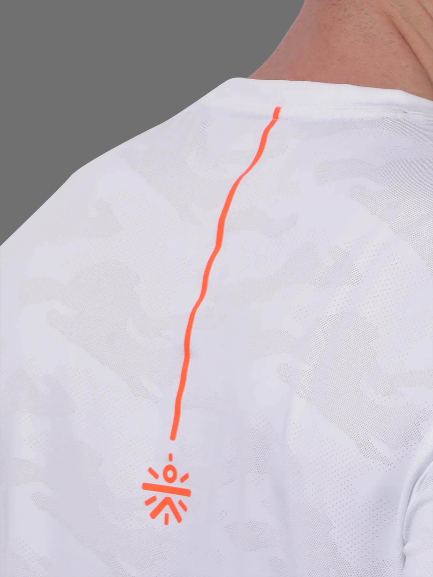 Designer's Note: This running tee has a contoured design feel for easy movement, forward shifted seams for reduced chafing and sweat-wicking tech to run that extra mile
