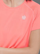 Train like a boss in this women's t-shirt. The contoured FreeLift design allows for a full range of motion so you can perform overhead squats and kettle bell swings without the tee riding up. It's made of sweat-wicking fabric that pulls moisture away from your skin and dries quickly.