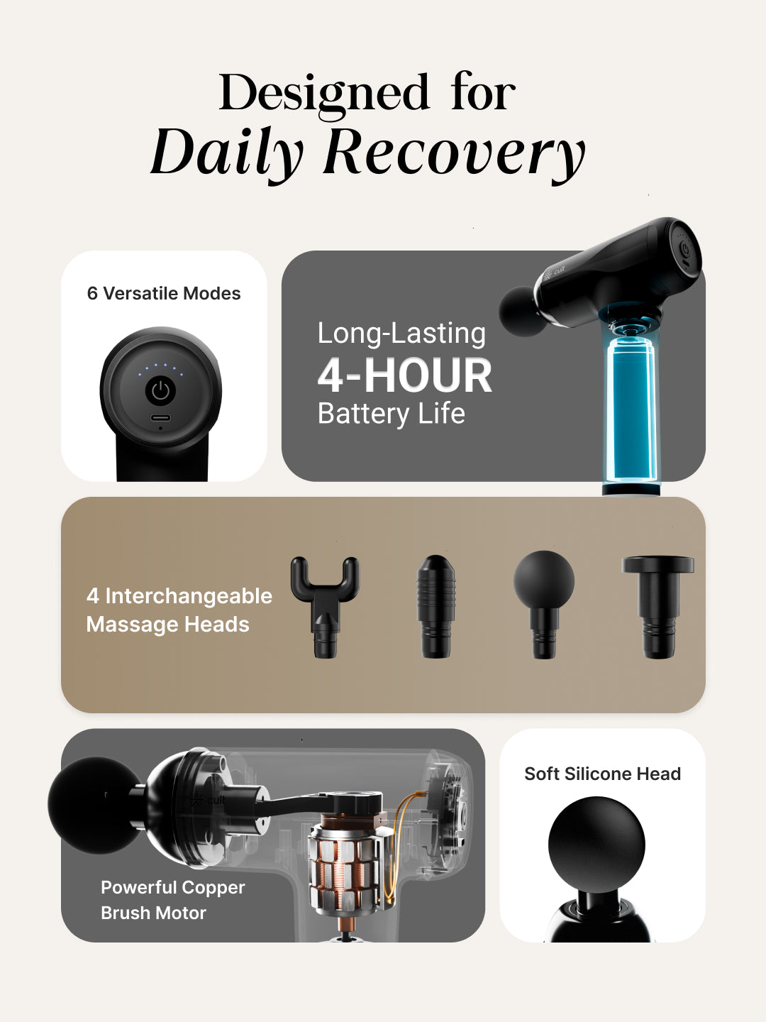 Cult Volt Neo Portable Massage Gun | 4000mAh Battery, Silicone Head, Muscle Pain Relief