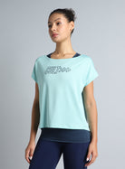 Train hard, stay cool with the Women's 2in1 Layered Performance Turquoise T-shirt! The breathable outer layer with FLY-DRY™ technology keeps you fresh, while the super-stretch inner tank moves with you. Designed with a boxy crop fit for a relaxed feel, it’s finished with a minimal print design for a sleek touch. Performance and style, all in one.