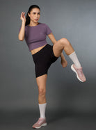 Get ready to crush your goals with Women's Action Packed Running Purple Crop Top. Stay cool and focused with the moisture-wicking fabric that keeps sweat at bay. The ribbed knit adds a touch of style and flexibility, while the slim fit flatters your shape, ensuring you look as good as you feel.