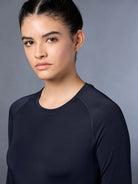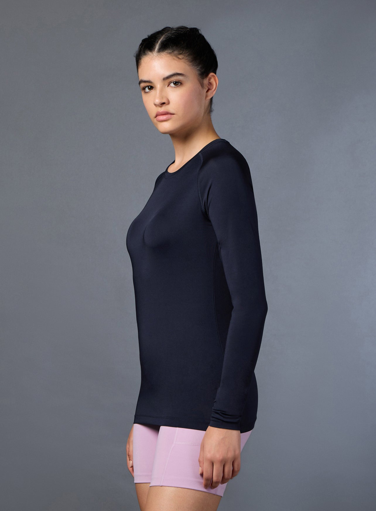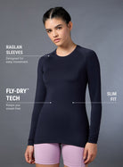 Own the track in Women's Base Layer Navy Compression Running Top that moves with you! Made from super-stretch, sweat-wicking fabric, it keeps you dry, comfortable, and focused every step of the way. This slim-fit essential is designed for high-performance runs, featuring a reflective logo for added visibility.