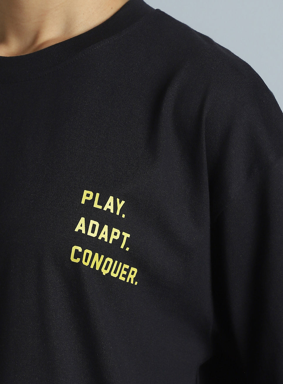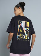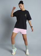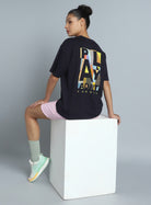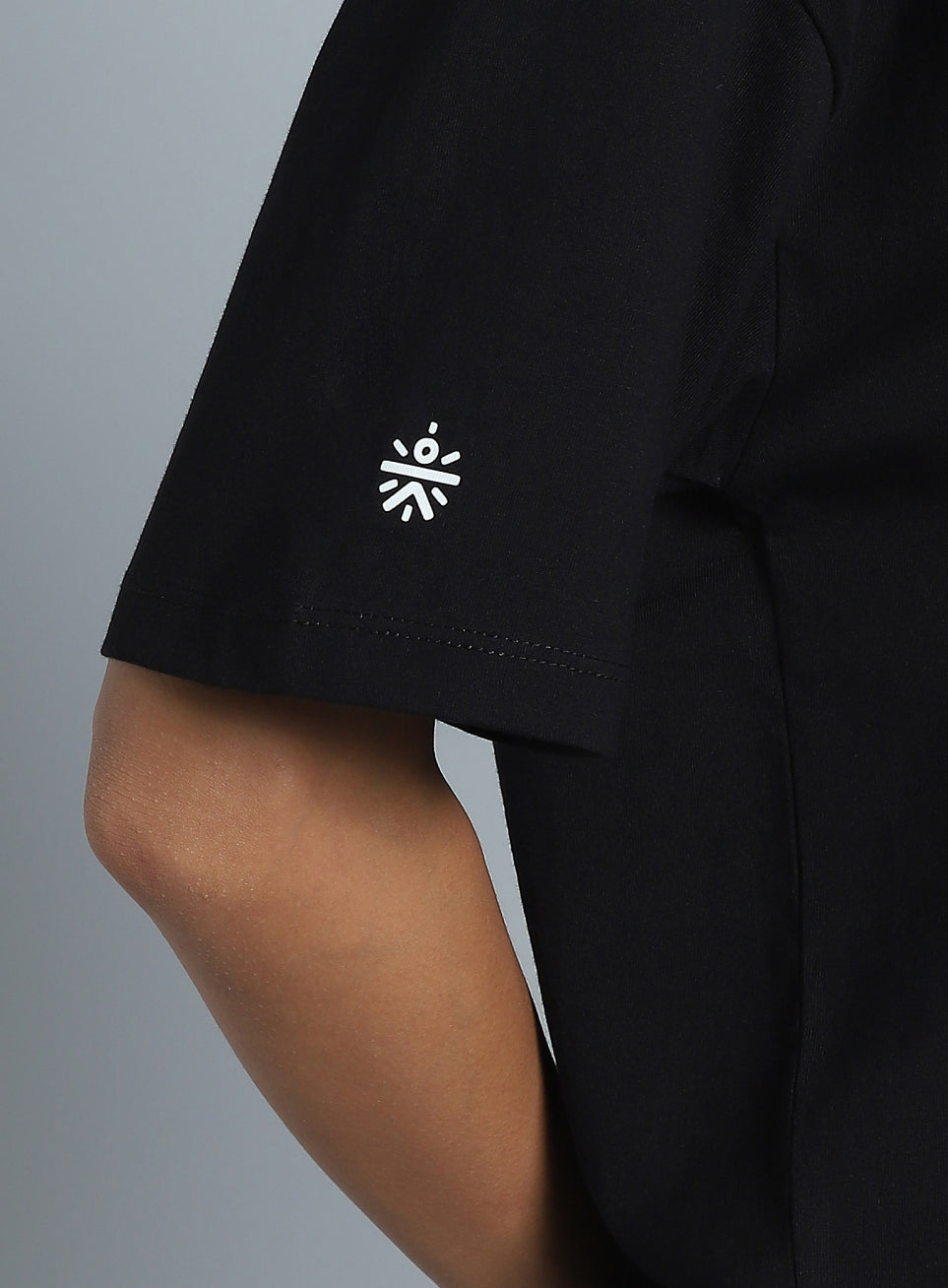 Level up your look with the Women's Black Back Print Oversized Fit T-shirt, made to keep things cool and effortless. Crafted from super soft fabric that feels smooth against the skin. Designed with a ribbed neckband for a clean finish and the puff print that adds a fun, textured look to your everyday style. Featured with an oversized fit for all-day ease.