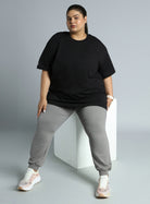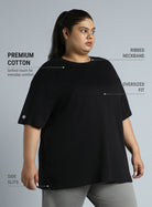 Women's Black Cotton Plus Size Everyday Oversized Fit T-shirt