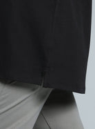Take it easy in the Women's Black Cotton Plus Size Everyday T-shirt. Crafted from premium cotton fabric, it feels soft, breathable, and smooth on your skin—made for all-day comfort. The side slits offer relaxed movement with a roomy, easygoing fit. The ribbed neckband adds structure and stretch, while the oversized fit drapes with ease for a relaxed, feel-good silhouette.