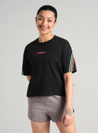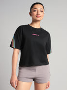 Comfort leads the way in the Women's Black Cult Vibe Stripes Boxy Fit T-shirt, designed for easy living. The super-soft fabric that feels smooth against the skin. The ribbed neckband adds structure and durability to the tee. The boxy crop fit creates a bold, relaxed silhouette that’s effortlessly on-trend. The HD print delivers a sharp, eye-catching detail.