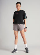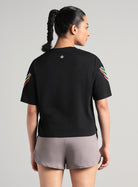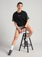 Women's Black Cult Vibe Stripes Boxy Fit T-shirt