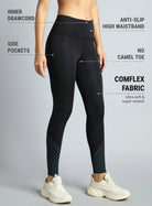 Stay comfortable and stylish in the Women's Black Impact Running Tights. Made with COMFlex fabric, they offer cloud-like softness and flexible stretch for ultimate comfort. The anti-slip high waistband and the inner drawcord provides a secure, adjustable fit, while the side pockets keep your essentials within reach. The no-camel-toe design ensures smooth coverage, and the stylish prints gives a standout look.