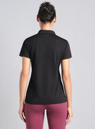Bring a sporty twist to your look with the Women's Black Performance Training Polo. The FLY-DRY™ technology wicks away sweat to keep you cool and dry through every session. The textured fabric lends a refined, elevated look to your wardrobe. The ribbed collar holds its shape wear after wear, while the button placket gives you a customisable neckline to compliment your day.