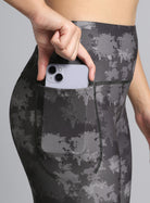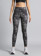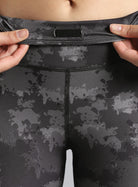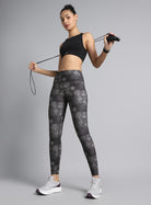 Elevate your workout with our Women's Black Printed Performance Tights. The FLY-DRY™ tech wicks sweat for faster evaporation, keeping you cool and dry. The multi-stretch fabric flexes in every direction for unrestricted movement. The anti-slip high waistband stays secure through every rep, while the no-camel-toe design ensures distraction-free focus.