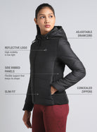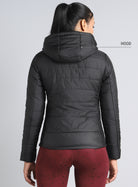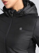 Step out in effortless style with the Women's Black Puffer Jacket, designed to blend fashion with everyday comfort. Built with an adjustable hood, it lets you customise your coverage for a snug fit or extra ventilation whenever you need it. The concealed zippers keep the look sleek while keeping your essentials within reach. The side ribbed panels enhance flexibility and unrestricted movement while maintaining a structured fit.