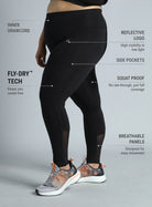 Own your stride in the Women's Black Running Essential Plus Size Tights. The FLY-DRY™ tech keeps you cool, dry, and focused through every mile. The COMFlex fabric delivers soft stretch that supports and moves with your body. The no-roll waistband ensures a secure fit, while the squat-proof design keeps you fully covered. The breathable panels boosts airflow keeping you cool through every run.