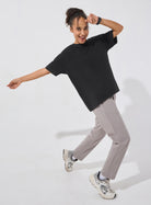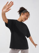 Move with ease in the Women's Black Soft Form Comfort Oversized T-shirt, designed for modern comfort and effortless movement through your day. The soft form fabric offers supreme softness with adaptive stretch to support natural motion. The shape-retaining structure helps the T-shirt maintain its form through repeated wear. The ribbed neckband provides stretch while holding its shape. The oversized fit provides extra room with a confident, contemporary edge.