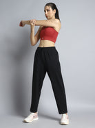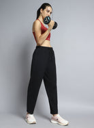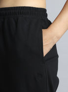 From warm-up walks to cooldown stretches, the Women's Black Traveller Tapered Fit Trackpants have you covered. Made with premium cotton, they feel soft against the skin and move with ease. The elasticated waistband with the adjustable drawcord offers a personalised fit, while the side pockets keep your essentials within easy reach. A tapered silhouette adds a clean, athletic finish.