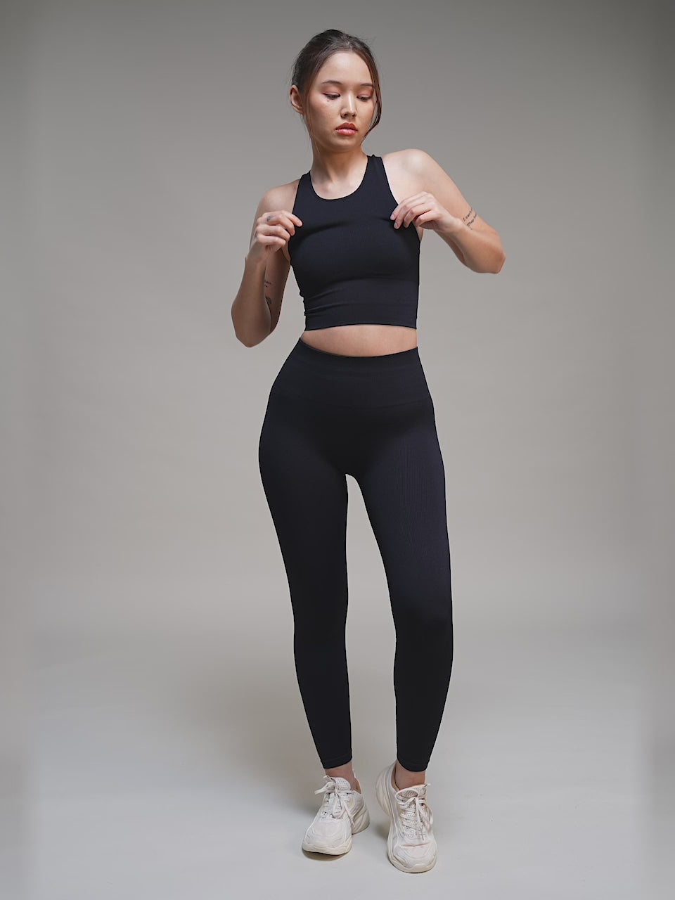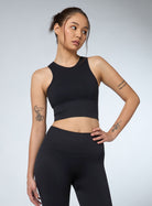 Women's Black Versatile Cropped Top Seamless Medium Support Bra