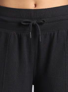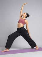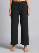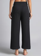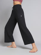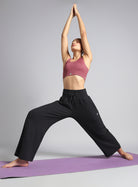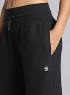 Stretch with ease in the Women's Black Yoga Flow Wide Leg Pants, designed for effortless comfort and style. Made from textured fabric that adds a sleek finish while keeping you comfortable through every move. The high waist offers a secure, flattering fit, while the adjustable drawcord lets you personalise your comfort. The relaxed fit creates a laid-back silhouette, and the side pockets keep your essentials close at hand.