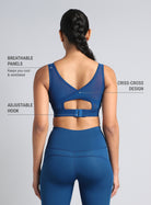 Bring the power to every move with the Women's Blue AOP Cross Over High Impact Bra, designed for performance and style. Made from FLY-DRY™ fabric that’s lightweight and helps wick away sweat to keep you cool. Features a criss-cross back for flexible support and removable padding for a customisable fit. Designed for high-impact activities, this sports bra is perfect for all your high-intensity workouts.