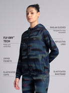 Stay sharp in motion with the Women's Energy Map All Over Print Lightweight Jacket, made to keep comfort effortless. The FLY-DRY™ fabric wicks away sweat to leave you cool and dry through every set. The lightweight build makes movement easy while keeping bulk away. The elasticated waistband locks in a stay-put fit for distraction-free training. The zipper pockets secure your essentials on the go.