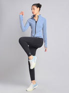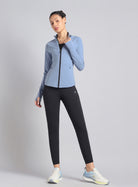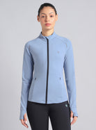 Take on every run with the Women's Blue Performance Training Essential Jacket, a sleek layer built for speed and performance. Made with COMFlex fabric that combines cloud-like softness with flexible stretch, giving you comfort that moves with you effortlessly. Featuring a front-open zipper allows easy adjustments and better ventilation, and concealed zipper pockets let you carry essentials securely. The thumbhole sleeves offer a secure fit that keeps you covered and adds a sleek, sporty edge to your look. The reflective details enhance visibility, keeping you safer during evening workouts or outdoor activities.