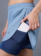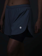 Stay supported and move freely in these Women's Blue Pro Running Shorts. Crafted with FLY-DRY™ technology, it wicks away sweat to keep you dry and focused. Designed with an elasticated waistband and inner drawcord for a secure fit. The super-stretch inner tights provide extra coverage and comfort, while the built-in pockets keep your essentials safe. Perfect for your workouts.