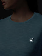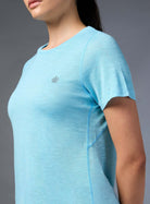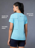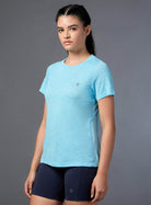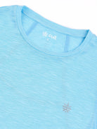 All-day ease with the Women's Blue Slub Engineered Knit Top. Crafted with FLY-DRY™ technology, this fabric swiftly wicks away moisture to keep you dry and comfortable. Designed with seams for unrestricted movement and regular fit for a versatile look. Whether you're stretching, strolling, or just vibing, it’s your go-to for everyday adventures.