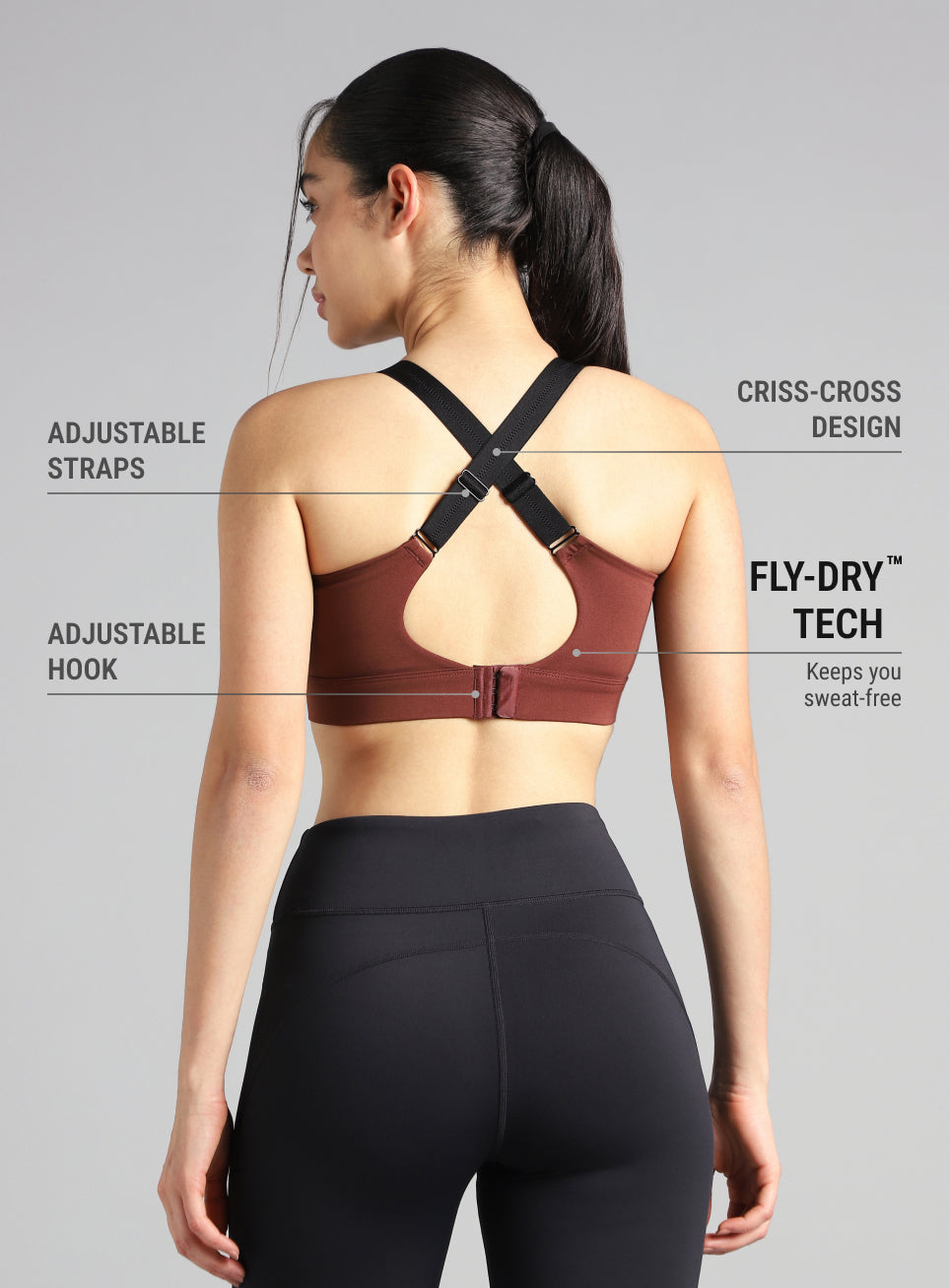 Run wild with the Women's Brown High Impact Running Bra built to keep pace. The FLY-DRY™ tech wicks sweat away to keep you cool through demanding runs. The multi-stretch fabric adapts to your movement for flexible comfort. The high-impact support stabilises bounce even at high intensities. The removable padding offers adjustable coverage, while the adjustable straps help dial in a precise, run-ready fit.