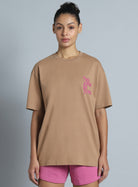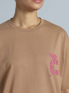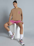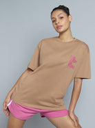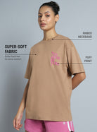 Level up your laid-back look with the Women's Brown Printed Oversized Fit T-shirt, made to keep things cool and effortless. Crafted from super soft fabric that feels smooth against the skin. Designed with a ribbed neckband for a clean finish and the puff print that adds a fun, textured look to your everyday style. Featured with an oversized fit for all-day ease.