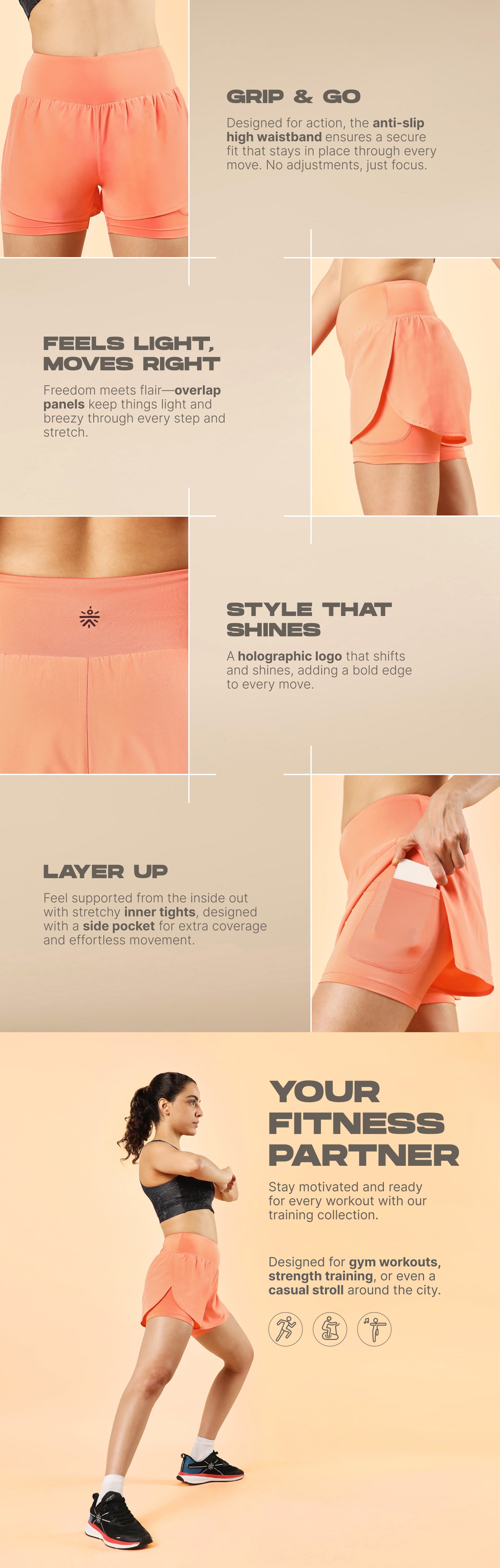 Power through every move in the Women's Coral Performance Pro Training Layered Shorts. Crafted with FLY-DRY™ tech, they wick away sweat to keep you dry and focused. The lightweight overlap panels let you move without limits, while the super-stretch inner tights offer extra coverage and move with you. The anti-slip high waistband provides a secure fit, and the side pocket keeps essentials close.