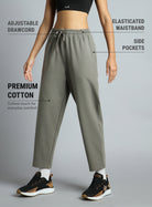 From warm-up walks to cooldown stretches, the Women's Grey Traveller Tapered Fit Trackpants have you covered. Made with premium cotton, they feel soft against the skin and move with ease. The elasticated waistband with the adjustable drawcord offers a personalised fit, while the side pockets keep your essentials within easy reach. A tapered silhouette adds a clean, athletic finish.