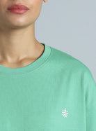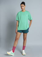 Make a bold statement with the Women's Green Back Print Oversized Fit T-shirt, designed for effortless style. Made from super soft fabric that feels gentle on your skin all day. Features a standout puff print at the back and a ribbed neckband for a clean, structured finish. The oversized fit keeps it roomy and easy to style. Perfect for everyday wear.