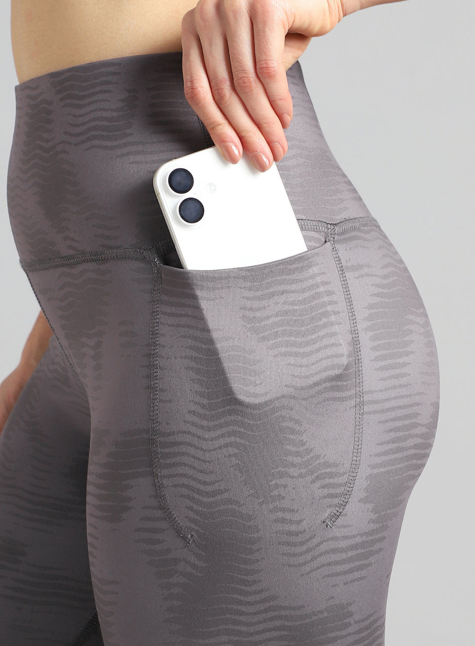 Train relentless in the Women's Grey Printed Train All Day COMFlex Tights made to keep pace with every move. The FLY-DRY™ technology pulls sweat away fast to keep you cool through high-effort sessions. The COMFlex fabric feels ultra-soft with stretch that supports unrestricted training. The anti-slip high waistband and inner drawcord lock the fit for stable movement. The side pockets keep essentials close with a performance-led silhouette.