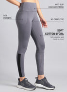 Train like a pro in the Women's Grey Step Up Cotton Tights, built for support and flexibility. Made with soft cotton-lycra, they offer soft comfort and stretch that moves with every step. The anti-slip high waistband keeps a secure hold, while the side pockets provide handy storage for essentials on the go. The compression fit supports your muscles and enhances every move.