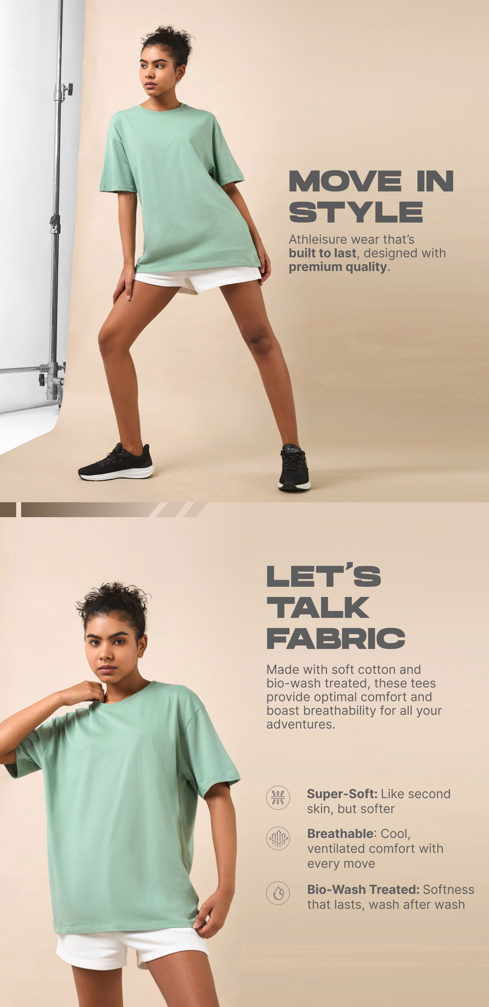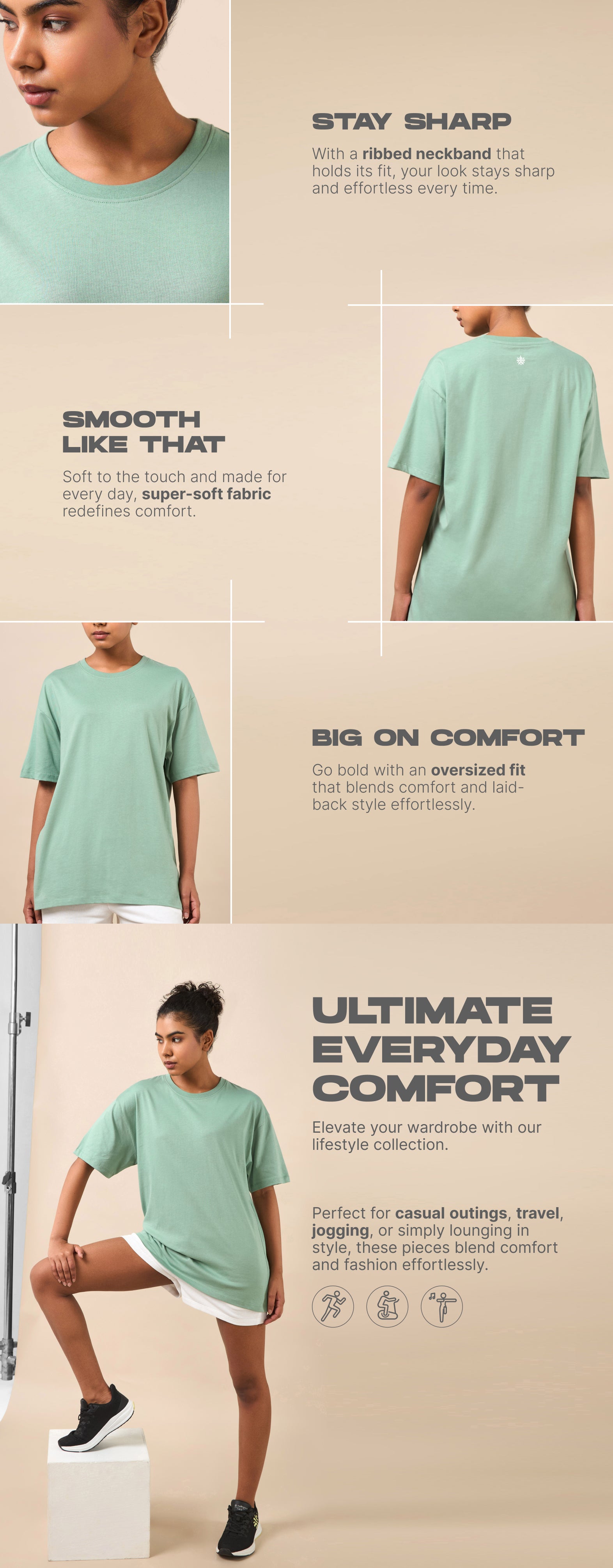 Say goodbye to snug fits and hello to relaxed comfort with our Women's Lounge Oversized Fit Green T-shirt! Made from 100% cotton, it’s soft and gentle, perfect for lounging. With its roomy silhouette, this tee is your go-to for chilling at home, hanging out, or binging your favourite shows.