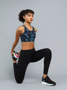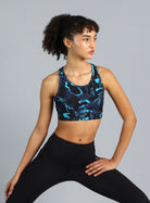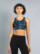 Women's Navy Printed Racerback High Impact Bra
