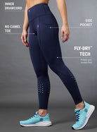Run with confidence in Women's Navy Ultimate Run COMFLex Tights! Crafted with COMFlex fabric, they deliver cloud-like softness and flexible stretch for ultimate comfort. FLY-DRY™ technology wicks away sweat to keep you dry and focused. The side pocket keeps your essentials handy, while the inner drawcord ensures a secure fit.